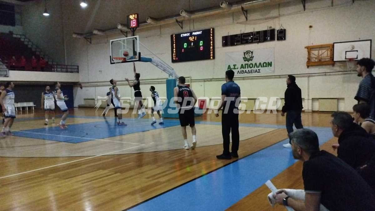 Η ομάδα του Εθνικού Λιβαδειάς πραγματοποίησε καλή εμφάνιση στο, εξ αναβολής, ματς της 21ης αγωνιστικής, της Α’ φάσης (κανονική περίοδος), του προγράμματος, του Β’ ομίλου του πρωταθλήματος της “National League 1” 2025-2026 που έγινε (11/3) στο δημοτικό κλειστό γυμναστήριο της Λιβαδειάς και επικράτησε δίκαια της ομάδας του Αθλητικού Ομίλου Παγκρατίου με 81-74!