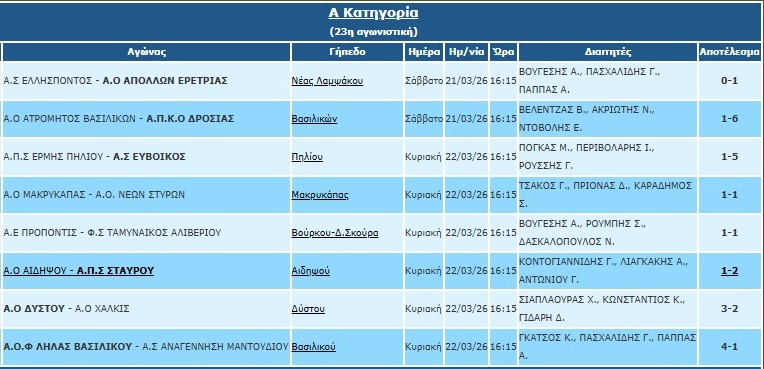 Ο ΑΟ Ν. Στύρων τσίμπησε βαθμό στην Μακρυκάπα και αύξησε την βαθμολογική απόσταση από την 14η θέση, ενώ ο Σταυρός έφυγε νικητής από την Αιδηψό και σκαρφάλωσε στην 5η θέση της βαθμολογίας.
