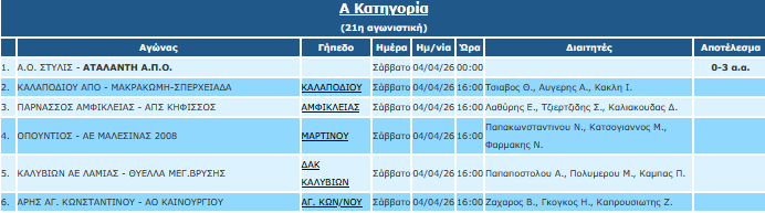 Το πρωτάθλημα της Α’ Φθιώτιδας συνεχίζεται με την 21η αγωνιστική.