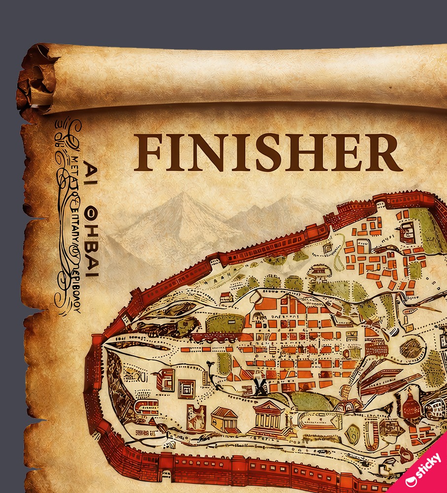 Η 3D απεικόνιση του επταπύλου περιβόλου προσδίδει δυναμική και ένταση στην εικόνα, ενσωματώνοντας την αίσθηση της ιστορικής κληρονομιάς με τις προκλήσεις που αντιμετωπίζουν οι αθλητές του trail running.