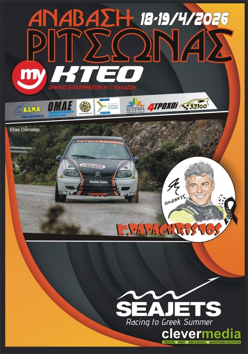 Όσον αφορά το πρόγραμμα της Ανάβασης Ριτσώνας, ο Διοικητικός και Τεχνικός Έλεγχος θα πραγματοποιηθεί την Παρασκευή 17 Απριλίου, από τις 17:30 έως τις 20:30, στο myKTEO Χαλκίδας, καθώς και το Σάββατο 18 Απριλίου στον χώρο των πιτς, από τις 08:00 έως τις 09:30.