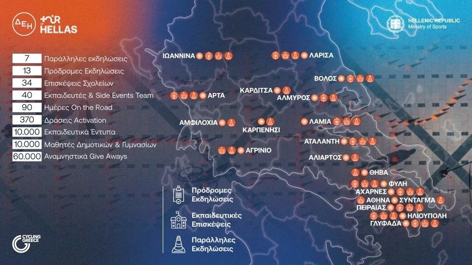 Μέσα από τις Παράλληλες Δράσεις του ΔΕΗ Tour of Hellas, η Cycling Greece φέρνει την ποδηλατική παιδεία στα σχολεία και στις πλατείες των πόλεων που συμμετέχουν στον Αγώνα, με παρουσιάσεις για τον Γύρο Ελλάδας, μαθήματα οδικής ασφάλειας, βιωματικές ασκήσεις και ενημερωτικό υλικό για τη σωστή χρήση του ποδηλάτου.