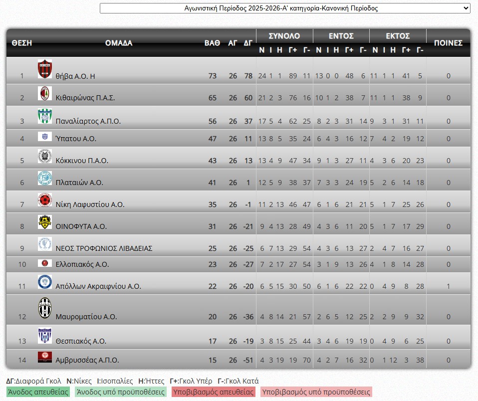 Ε.Π.Σ. Βοιωτίας-Α’ κατηγορία 2025-2026-Πρόγραμμα-αποτελέσματα αγώνων